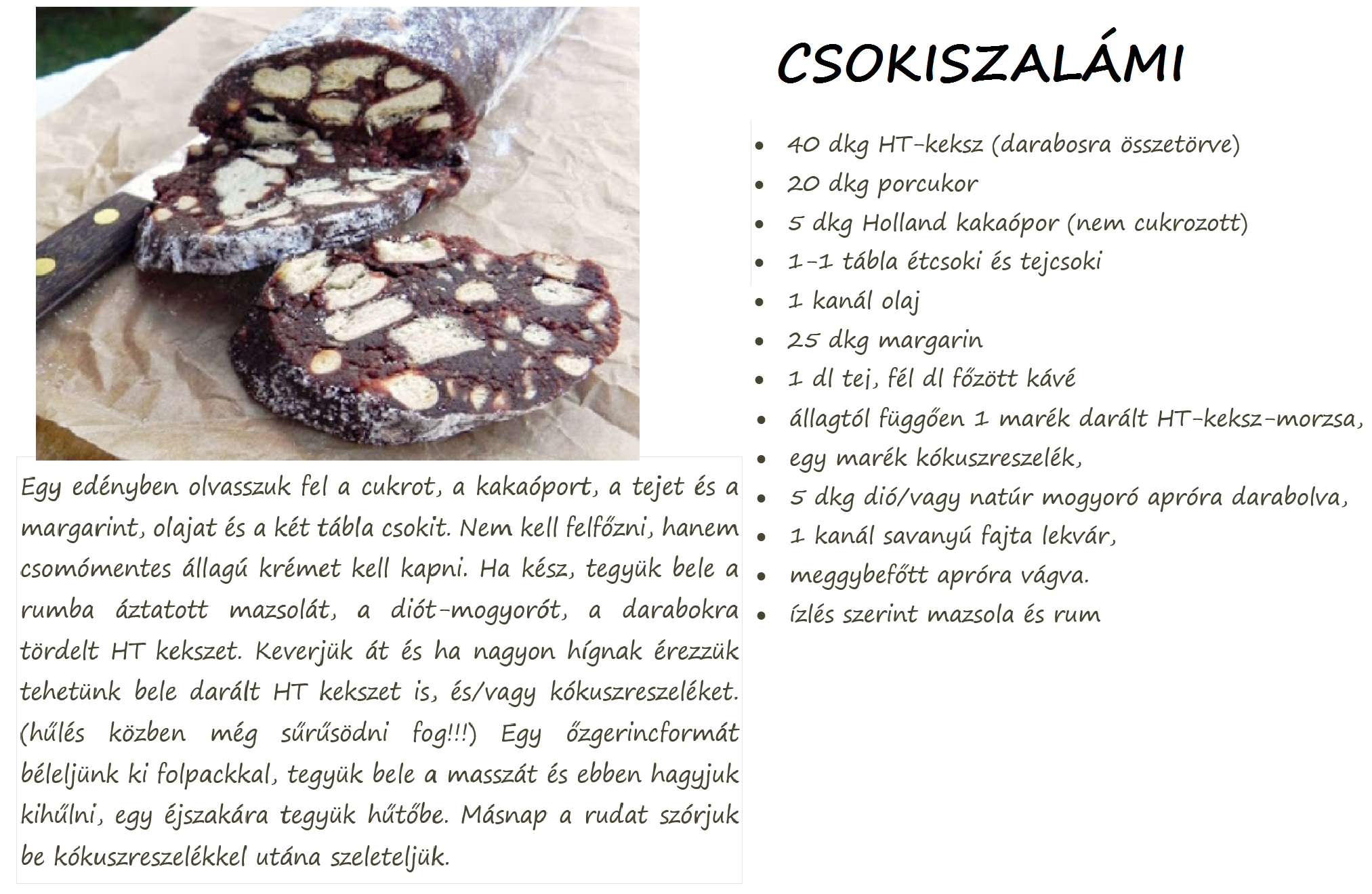- 40 dkg HT-keksz (darabosra összetörve)