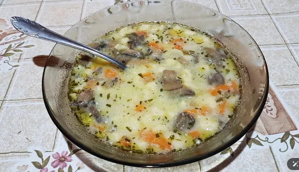Hozzávalók: 1 nagyobbacska fej vöröshagyma, fél kg vargánya v. csiperkegomba, 1 marék zöldborsó, 1 szem kockára vágott krumpli, 1 szál sárgarépa és fehérrépa, só-bors-tárkony (2 evőkanállal), 1 babérlevél, petrezselyem (ízlés szerint), ½ dl citromlé Habaráshoz: 3 kanál tejföl, 2 kanál liszt A nokedlihez: 100 g liszt, 1 db egész tojás 50 ml víz, só.